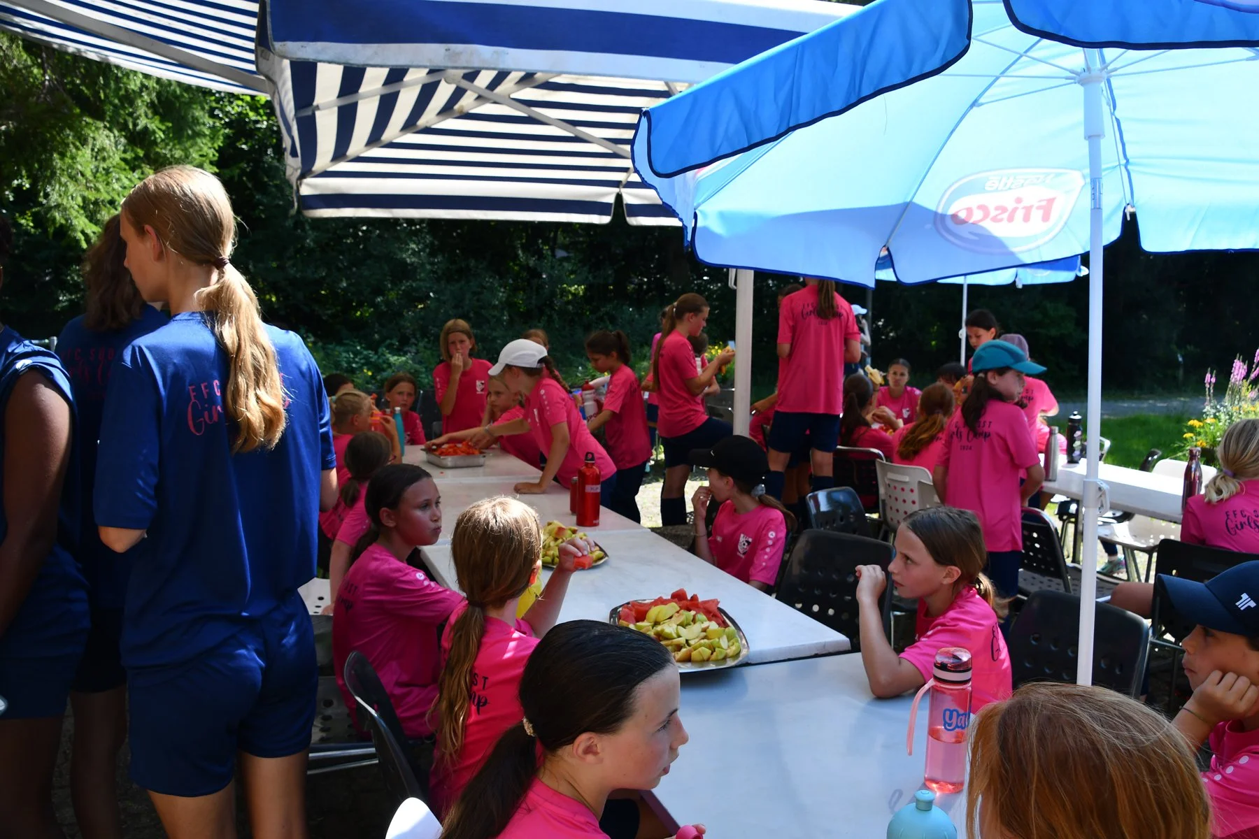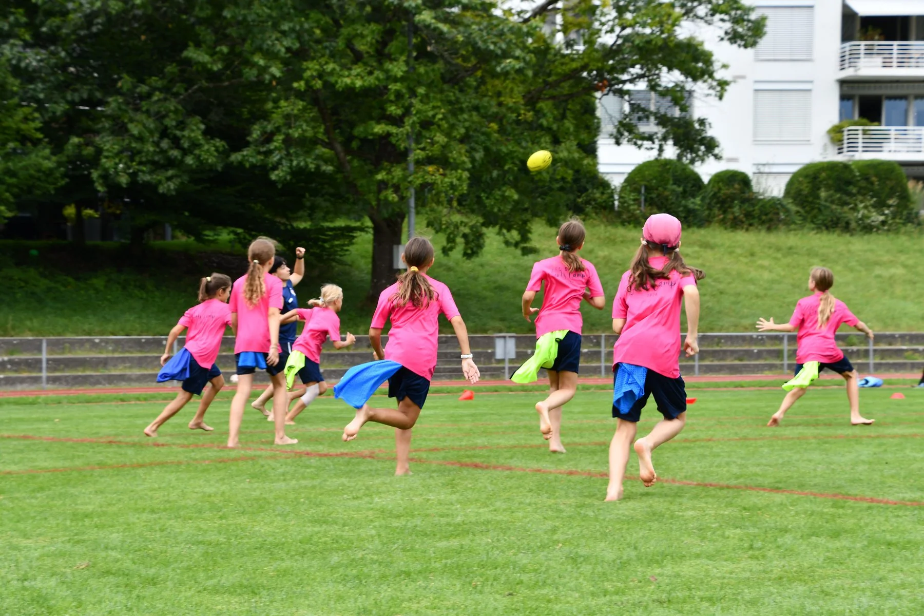 Am Mittwochnachmittag gab es ein polysportives Spezialprogramm. So konnten die Mädchen beim Speedradar ihre Schussstärke messen, wurde Flagfootball gespielt und auf zwei Wasserrutschen Abkühlung gefunden.