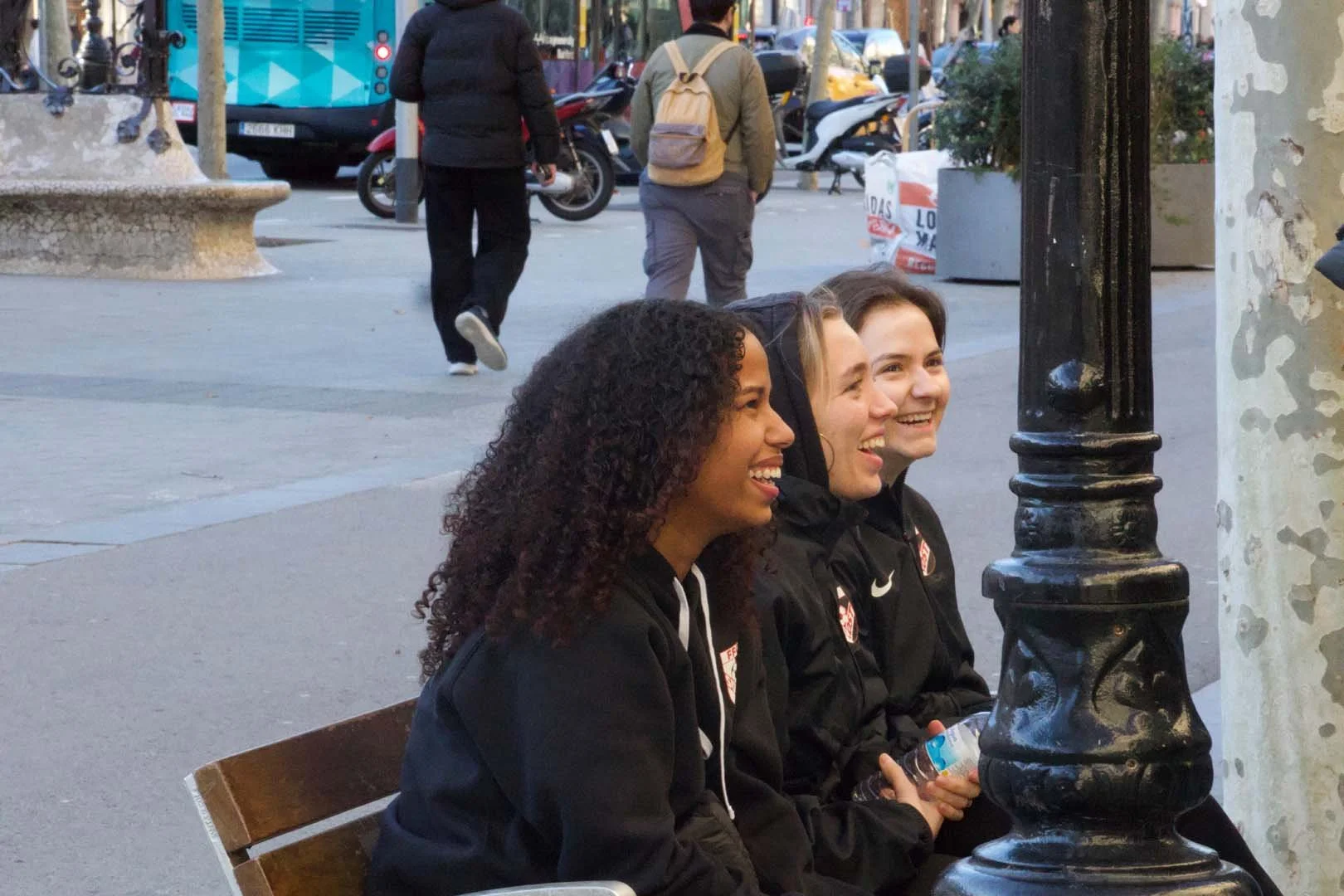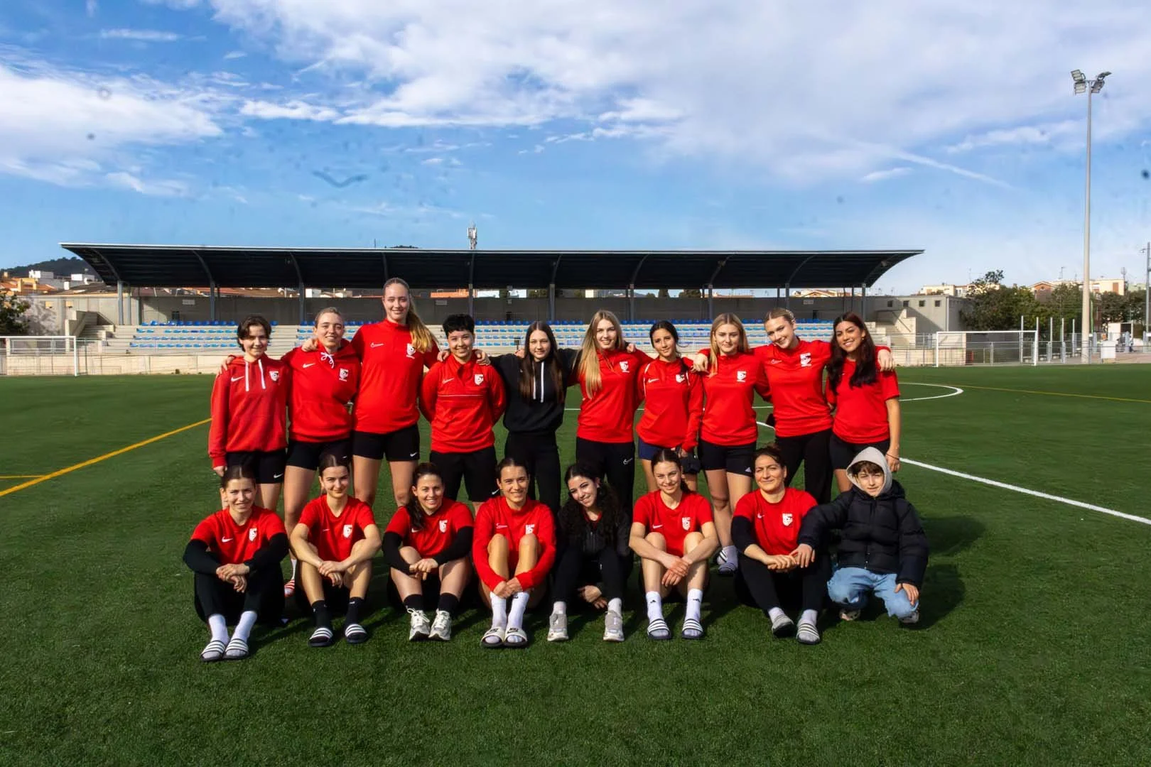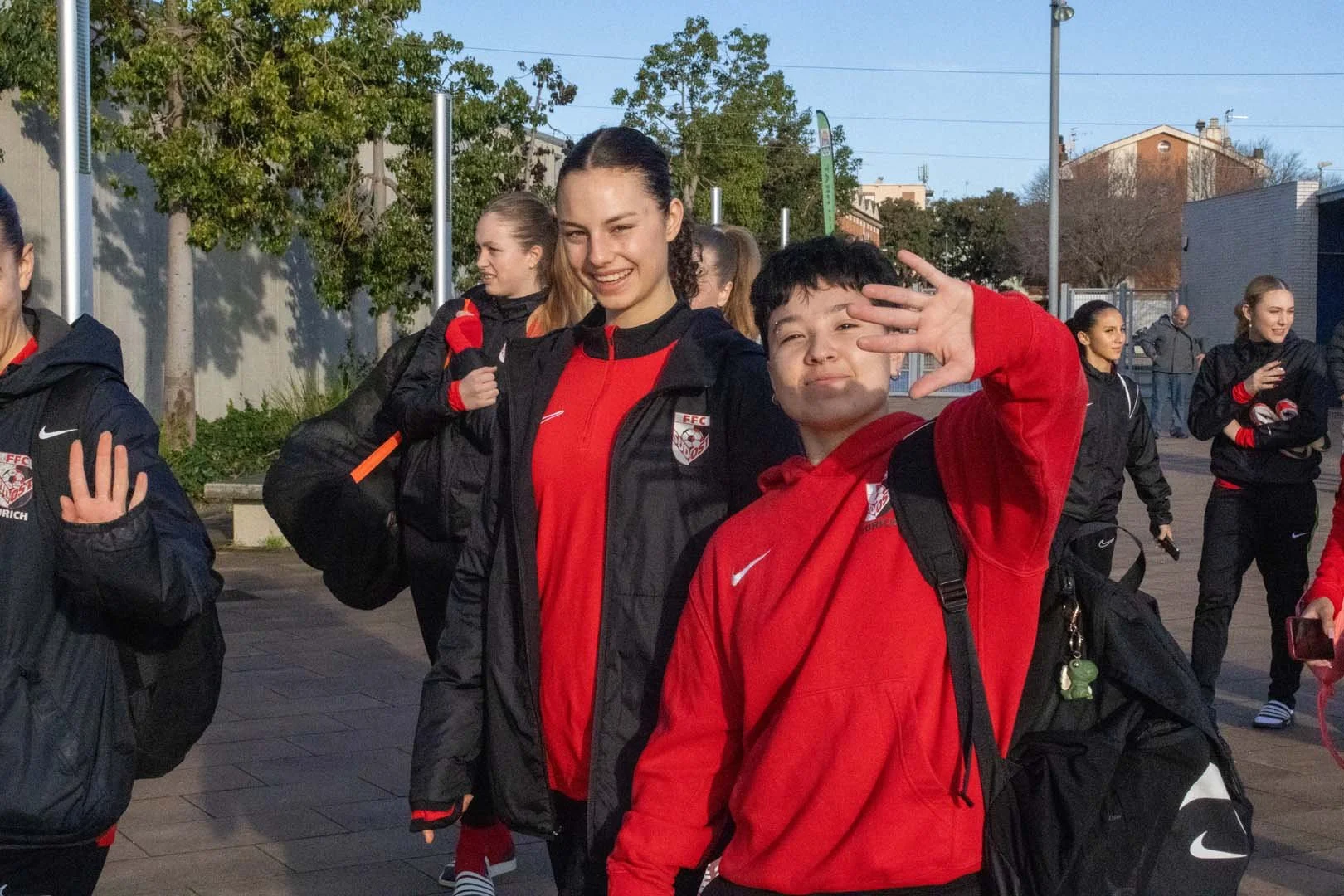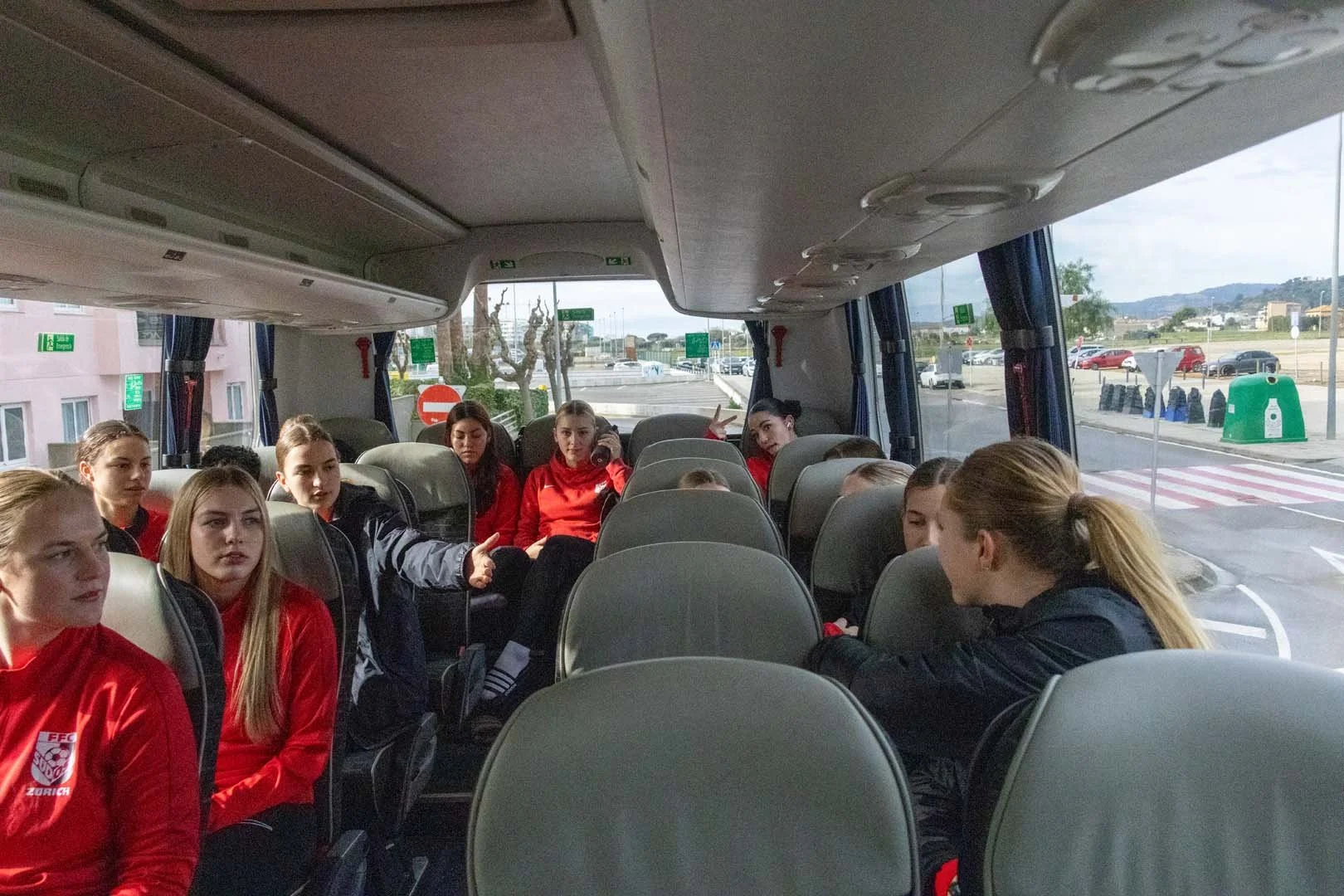 Am Samstagmorgen haben wir uns um 7:30 Uhr am Flughafen getroffen. Alle topfit und motiviert. Nach ein paar umständlichen Situationen haben es dann fast alle in den Flieger geschafft. In Barcelona angekommen, wurden wir von IberiaSports vom Flughafen abgeholt. Für uns ging es dann erst einmal in die Stadt, wo wir zuerst alle zusammen, dann in kleineren Gruppen durch die Strassen schlenderten. Wobei dann auch der ein oder andere Euro liegen geblieben ist. Zum Erstaunen von allen hatten am Ende des Tages unsere Trainer die meisten Einkaufstaschen in der Hand. Wir trafen uns dann noch einmal alle zusammen in einer Rooftop-Bar, wo wir den Sonnenuntergang bestaunen konnten. Dann war es aber auch schon bald Zeit, zu unserem Car zurückzugehen, der uns nach Santa Susanna gefahren hat, ein kleiner Ferienort etwas nördlich entlang der Küste. Im Bus war es erstaunlich ruhig, Shopping ist eben doch auch anstrengend. Im Hotel angekommen, konnten wir unsere Zimmer beziehen und haben uns dann zum Abendessen getroffen. Nach dem Essen sind auch die restlichen Spielerinnen, welche es am Morgen nicht auf den Flieger geschafft haben, eingetroffen, womit wir komplett waren. Gut, dann konnten wir alle beruhigt ins Bett. Morgen wird ein langer Tag.