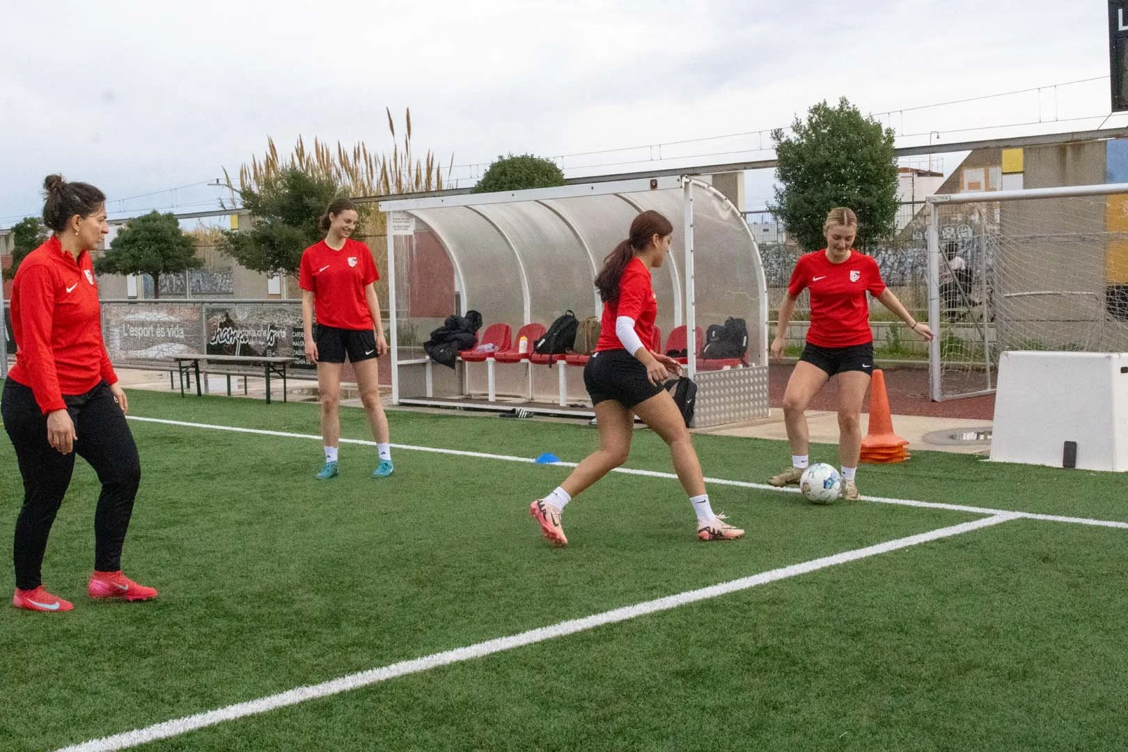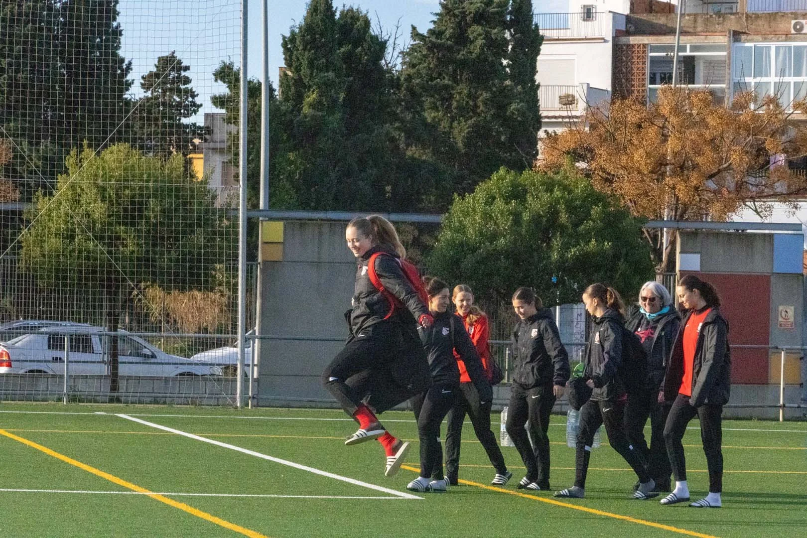 Heute ist Matchtag! Am Morgen hatten wir noch einmal ein Training und gegen Abend fuhren wir nach Sils. Ja, es gibt auch ein Sils in Katalonien. Das Hotel war so lieb und hat uns vor der Abfahrt noch einen Teller Pasta gekocht, sodass wir mit vollem Energietank zum Spiel gehen konnten. Gespielt haben wir in zwei Blöcken, sodass sicher alle eine Halbzeit spielen konnten. Wir starteten stark. C.F. Sils kam praktisch zu keinen Chancen. Wir haben nach Ballverlust keine Zeit verloren und hartnäckig die Bälle zurückgeholt. Kombiniert mit schönen Ballstaffetten war es nur noch eine Frage der Zeit, bis wir das erste Tor erzielen konnten. Mit einer 2:0-Führung gingen wir in die Pause. Die Gegnerinnen kamen etwas frustriert aus der Kabine zurück, was in der zweiten Halbzeit zu vielen Fouls und Unterbrüchen geführt hat. Wir haben uns jedoch nicht irritieren lassen, weiter gute Kombinationen auf den Platz gebracht und schlussendlich verdient mit 5:1 gewonnen. Als Belohnung und weil auch noch ein kleiner Hunger da war, haben wir auf dem Nachhauseweg im Car eine, ich sage jetzt einmal eher grosse, McDonald’s-Delivery-Bestellung aufgegeben, die dann zeitgleich mit uns im Hotel angekommen ist.